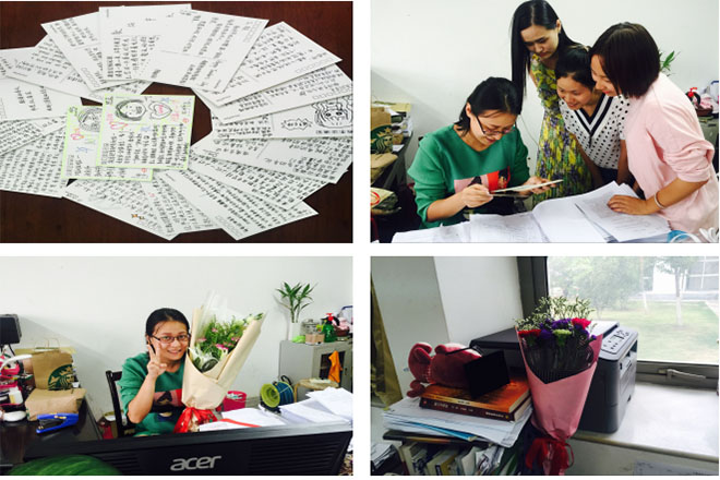 2015级汉语言文学(师范)专业的学生为辅导员送上了鲜花和手写的节日贺卡,报答老师的谆谆教导之情。“师者,传道授业解惑,于有生之年相遇名师,实属我之幸运,”2015级卓越语文实验班同学在 “万水千山总‘师’情”活动中写道,“值此教师节之际,祝全体老师节日快乐。”感谢在文学院遇见的大师们,得大师传承,教诲之恩永远铭记。
