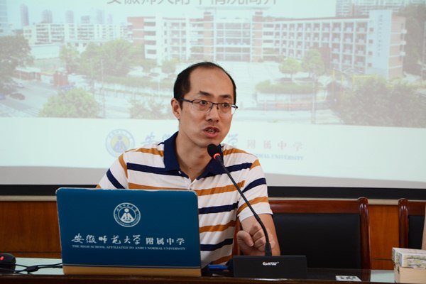 本网讯(附中  李居旖)724日上午,南京航空航天大学附属高级中学(下称南航附中)领导和学校骨干教师前来安徽师范大学附属中学(下称安师大附中)参观交流,教科研室副主任顾涛作专题汇报。