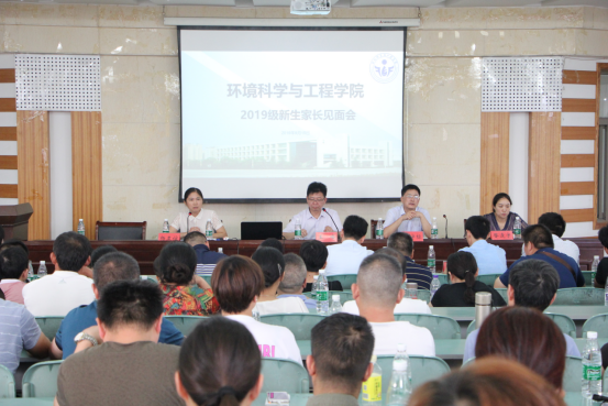师生齐聚,耐心解答,我们最爱心。学院党政领导高度重视新生入学工作,9月15日中午,学院领导深入迎新现场指导迎新工作,走访新生宿舍看望新同学、与家长亲切交流。组建爱心导游队,带领家长和新生一起参观校园和学院实验楼等,帮助新生尽快熟悉校园环境;下午4点,学院在财务处二楼报告厅召开了环工学院2019级新生家长见面会,院长周守标、党委书记王峰、副书记杨友谊、副院长昝逢宇、专业负责人、辅导员和近200名新生家长参加会议,会议由王峰主持。会上,周院长代表学院向家长们表达了最热烈的欢迎和最衷心的感谢,并介绍了学院各方面的情况,让家长和新生对学院有了更进一步的了解。9月15日晚,新生辅导员分别召开了大班会,着重强调了安全纪律要求,并对班级的入学初期工作做了布置,让新生更快融入班级体。