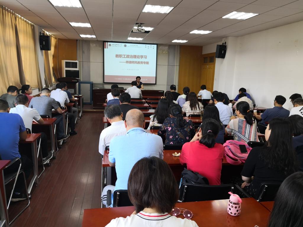 本网讯(经管学院)918日下午,经管学院在学院二楼报告厅召开全院教职工大会,进行教职工理论学习暨师德师风专题教育。学院全体教职工参加,会议由学院党委书记陈秀庆主持。