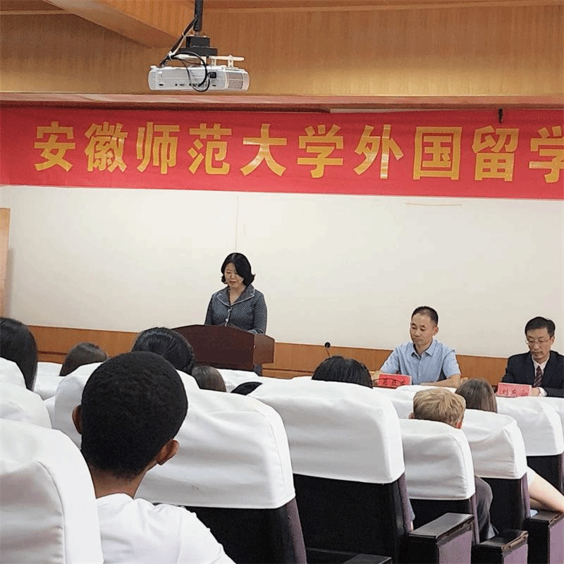 首先,刘东合致欢迎辞,对所有新生的到来表示热烈欢迎,他向新生介绍了我校的发展沿革,使新生深入了解我校历史;展示了国际教育学院优秀的教师队伍和优秀教学成果,加强了新生在国际教育学院学习的信心。最后刘东合对新生提出了五点希望:一要开放自己,尽快适应在中国的生活;二要学好汉语,学好专业,;三要积极参加学校各项活动,与中国老师和同学沟通交流,创造一个真正国际化的校园;四要学成回国后搭建好中国与世界各国友谊的桥梁,为安徽师范大学的国际化做出自己应尽的责任;五要遵纪守法,文明礼貌,成为安徽师范大学的好学生。