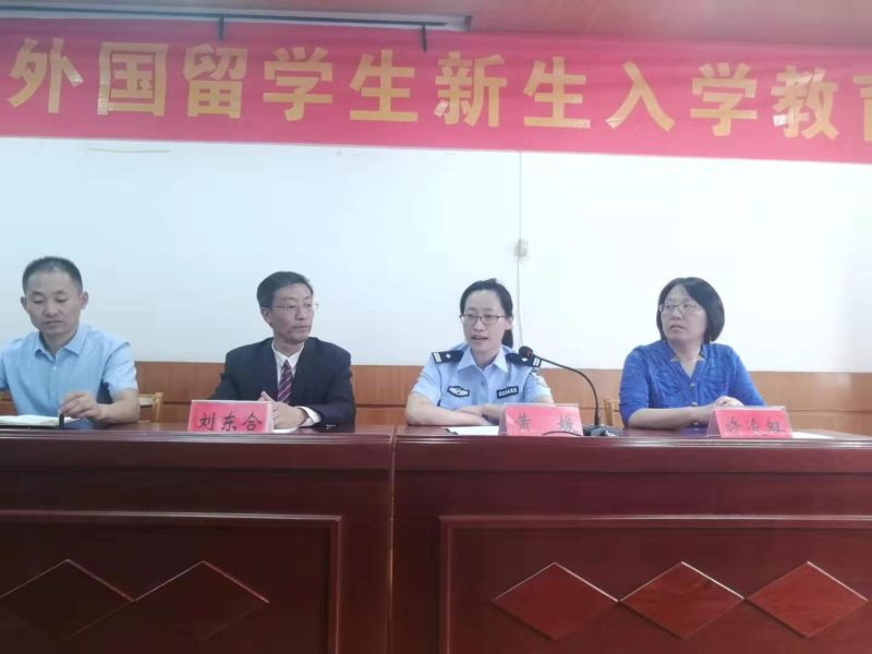 芜湖市公安局出入境管理局警官黄媛为留学生新生做签证管理和校外安全教育,她细致地提出了留学生在校外生活中需要注意的各项事宜,使新生更加了解中国的法律法规,加强了新生的安全意识和自我防范意识。