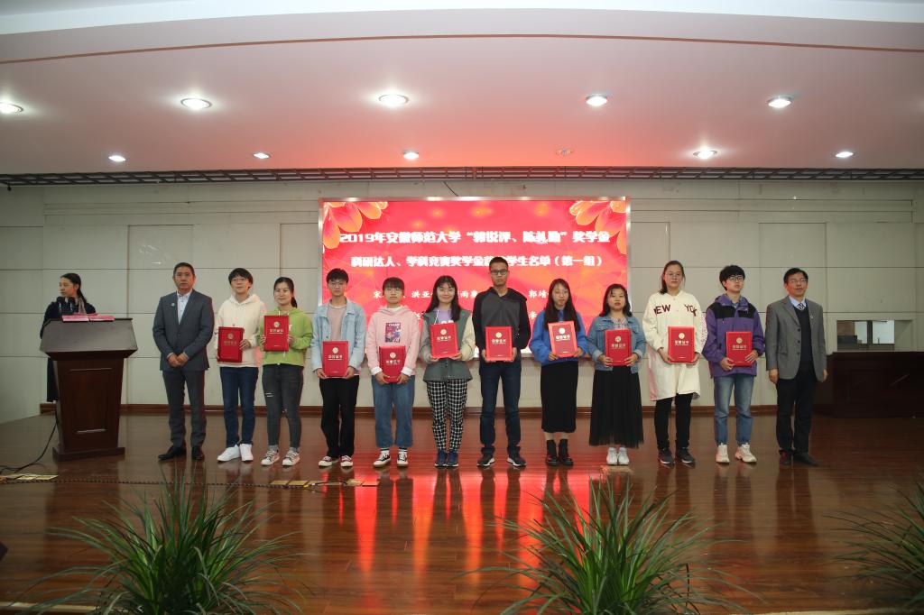 本网讯(化材学院 陈静、汪佳)近日,安徽师范大学首届“郭锐评、陈礼勤奖教金”、第二届“郭锐评、陈礼勤奖助学金”颁发典礼隆重举行。“郭锐评、陈礼勤”奖教金、奖助学金资助人,梯尔希(南京)药物研发有限公司董事长陈礼勤不远万里回到母校,为师生颁奖。校党委常委、副校长毕明福出席典礼并颁奖。校党委学工部部长、学生工作处处长刘晓宇,校教育基金会秘书长贡植斌,基金会项目管理部部长郑金泽,校社会合作处副处长江宁应邀参加本次活动。化材学院院党委书记汪俊武,院长高峰,“郭锐评、陈礼勤”奖教金获奖教师代表,全体奖助学金获奖学生以及学院本科生代表参加本次活动。颁奖典礼由院党委副书记余妍霞主持。