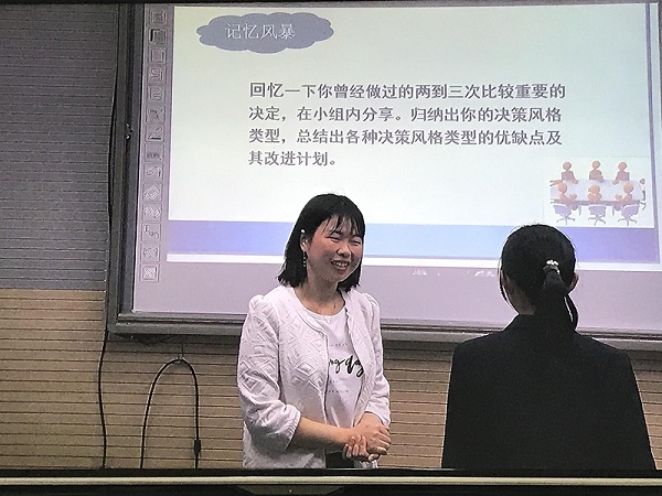 实验课展示上,项目组成员马鞍山当涂一中的陈天刚带来心理健康课《梦想在我手中》。陈天刚以“大风吹”活动开场,既活跃了课堂气氛又拉近了与同学们之间的距离,通过冥想将同学们带入时光穿梭机,与二十年后的自己面对面,并引导小组成员在五个手指上画下自己的梦想,并分组展示各组的梦想与口号,课堂气氛热烈有序。第二节实验课由田家炳实验中学王慧敏老师执教生涯规划课《举棋之间》。王慧敏直击高一学生即将面临的文理分科问题,理性又实用。她用四个情景故事结合同学们的互动选择,让同学们了解自己是哪种类型的决策风格。通过组织小组讨论和分享,让同学们了解每种决策风格的优缺点并与同学们一起分析了正确决策的五大步骤,并让同学们用决策平衡单以实践的方式将决策方法应用到生活当中。