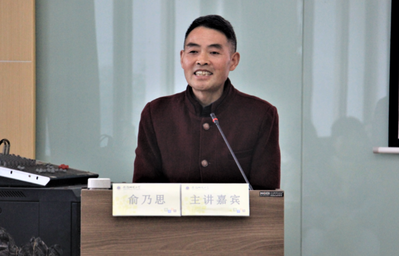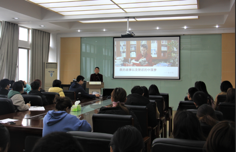 俞乃思以《我的故事以及背后的中国梦》为主题,用三次失败”、“四次中奖”、“七次荣誉”等一系列的小故事,分享了自己三十余年在基层奋斗的故事。用生动满满正能量的鲜活事例,佺释了一名基层共产党员爱岗敬业,脚踏实地,心怀感恩,坚守传播乡村文化、宣传孙村故事、塑造乡间人物、书写乡俚农俗的初心和使命。他认为:作为大学生,一要爱祖国,爱党,爱人民;二要有目标,做人做事,要有吃苦耐劳的精神,脚踏实地,干一行爱一行;三希望大家要重视乡土文化,为乡村振兴作出贡献。