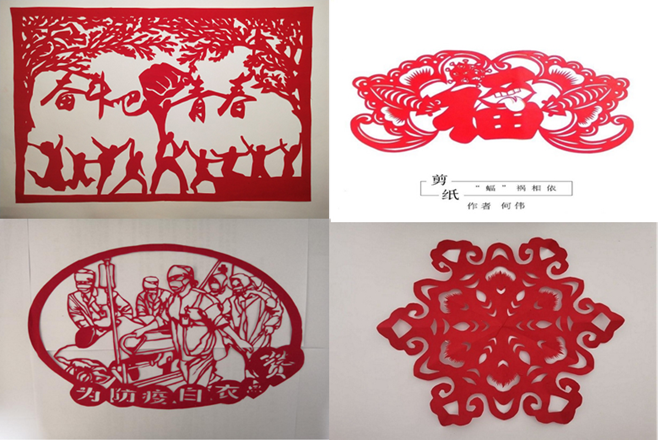 2009年,中国剪纸项目入选“人类非物质文化遗产代表作名录”。为努力使剪纸文化与当代文化相适应、与现代社会相协调,今年暑期,在指导教师的引领下,文学院“时代剪影,逐梦青春”剪纸实践团队再出发。实践初期,团队邀请专业的剪纸老师,在何伟老师的指导下团队的剪纸水平进一步提高。同时团队还在剪纸中融入“致敬逆行者”的主题,借剪纸传递民族大义,防疫白衣天使、抗洪战士等,团队皆以剪纸的形式记录下他们的英雄事迹。此后,团队利用录制视频、线上教学等方式为青年学生提供丰富的剪纸网络课程,在云端教学中传播剪纸文化。