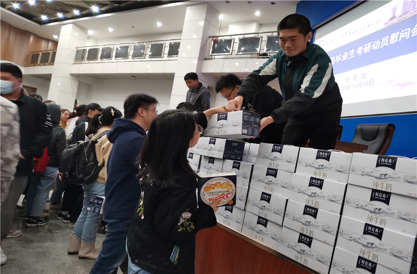 适逢考研的攻坚阶段,为了提高考研学子的热情,助力考研学子在最后关头取得进步、收获成功,10月16日下午,法学院于敬文报告厅召开2021届毕业生考研动员慰问会。院党委副书记王少仁、执行院长严宏出席本次会议,会议由王少仁主持。