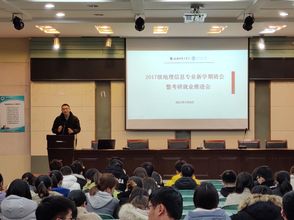 线上线下,上好开学一课。为帮助返校学生及时适应校园生活,进一步加强新学期学生思想政治教育和日常管理,开学第一周,地旅学院各年级辅导员组织召开新学期“开学第一课”主题班会,从党史学习教育、思想引领、学业规划、就业择业、安全管理、疫情防控等方面帮助学生规划新学期学习生活。今年是中国共产党百年华诞,要求同学们积极主动参与到学校、学院举办的党史学习教育中来,在活动中提升党史理论知识。同时,在疫情防控常态化背景下,辅导员们向同学们传达了新学期学校关于疫情防控的相关规定,要求坚持落实 “今日校园”每日健康打卡及“晨午晚检”制度。毕业班辅导员们通过线上和线下相结合的方式召开主题班会,充分分析疫情防控背景下的大学生就业形势,引导学生树立正确的就业观念,提升就业能力,努力实现高质量就业。