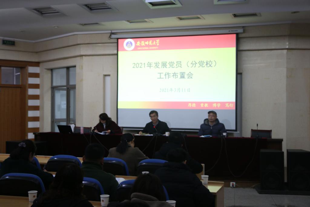 本网讯(组织部)3月11日下午,学校党委组织部召开会议布置2021年发展党员和分党校培训工作。校党委常委、组织部部长季爱新,组织部正处级组织员胡培亮,组织部副部长余妍霞,各院级党组织专兼职组织员、党委秘书和分党校班主任参加了会议。会议由余妍霞主持。