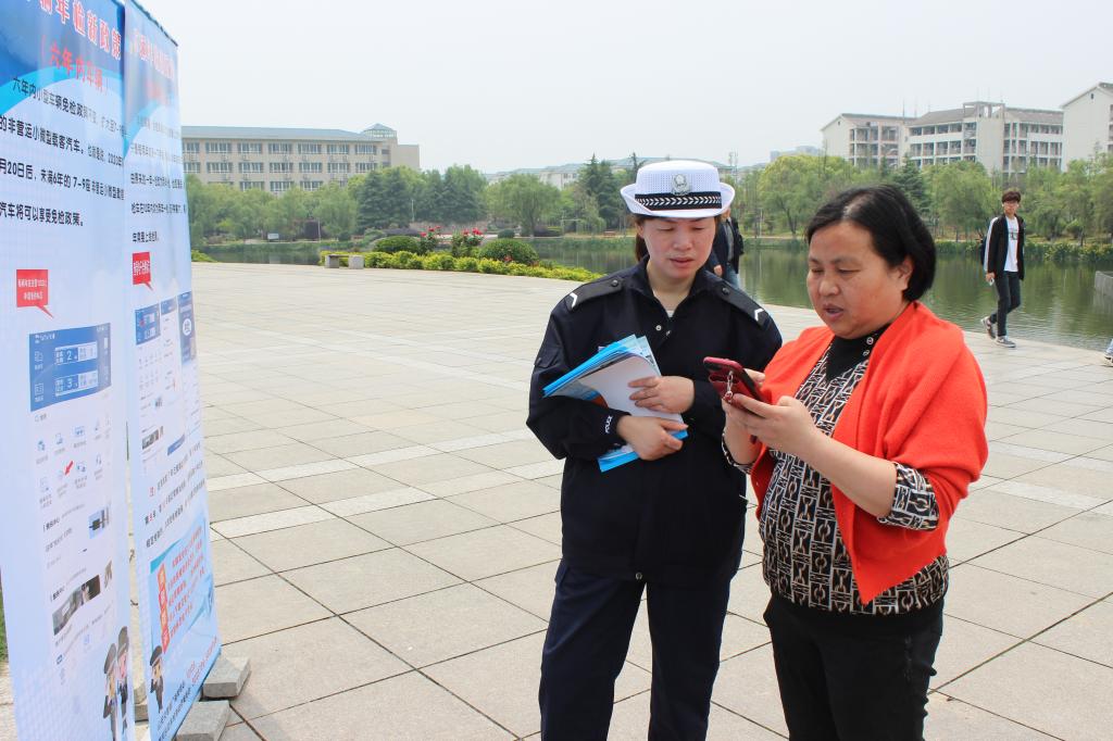 活动现场气氛热烈、内容丰富、师生踊跃,先后开展了包括“百年历史、常读常新”讲述党史故事,“车管服务+安全教育”校园交通安全宣讲,“便民车管”活动推广,“交管12123”APP现场指导,为我校6年内的小型车辆开辟相关业务办理绿色通道,开展交通法规线上“学法减分”学习教育指南等互动活动。弋江区交警大队民警不辞辛苦,走进校园,认真布展,他们向过往咨询的老师和同学们分发宣传单页、耐心介绍、细致讲解,大力宣传交通法规,积极倡导文明出行。
