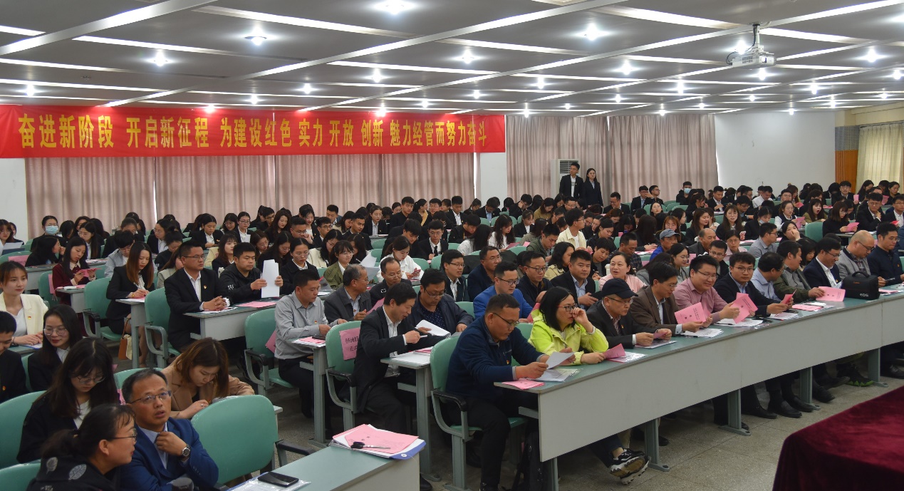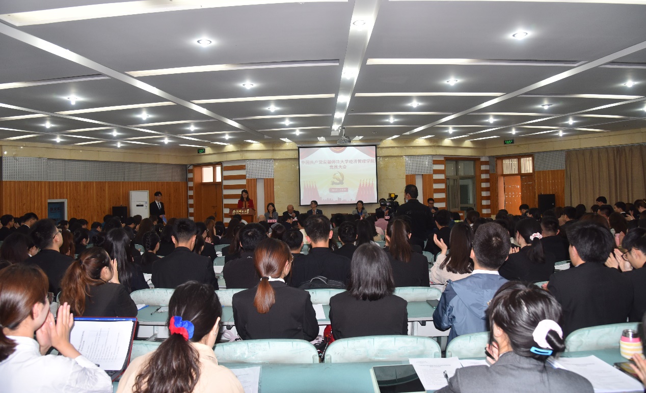 本网讯(经管学院 吕洋)4月28日下午,中国共产党安徽师范大学经济管理学院党员大会在花津校区财务处二楼报告厅胜利召开,大会选举产生了学院新一届党的委员会和纪律检查委员会。校党委组织部副部长余妍霞出席并指导大会,学院全体师生党员和部分特邀代表出席大会。大会由院长张廷龙主持。