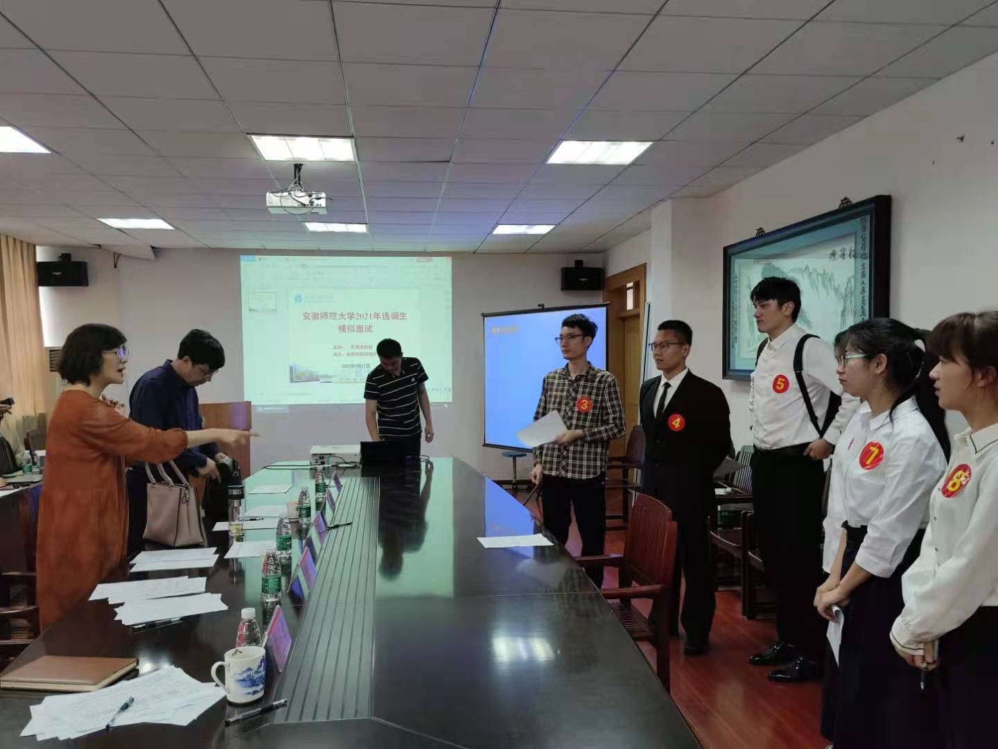 本网讯(地旅学院 韩红豆)学党史,办实事。为进一步提升我校毕业生选调生面试环节的竞争力,5月17日下午,由校党委组织部主办、地旅学院承办的2021年安徽省选调生模拟面试在地旅学院行政楼三楼会议室举行。地理与旅游学院党委书记贾冠忠、经济管理学院副院长伍旭中、文学院副教授芮瑞、李定乾等专家应邀担任模拟面试考官,来自地理与旅游学院、法学院、马克思主义学院、生命科学学院等学院入围安徽省选调生面试环节的考生代表参加了模拟面试,20余位备战2022年选调生、公务员考试的学生代表现场观摩学习。模拟面试由地旅学院党委副书记乔静主持。