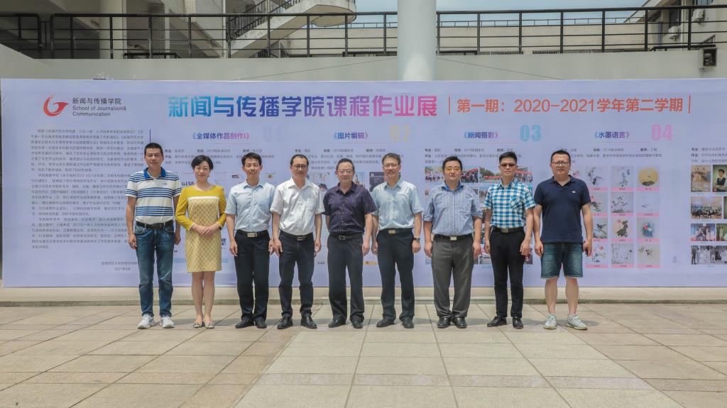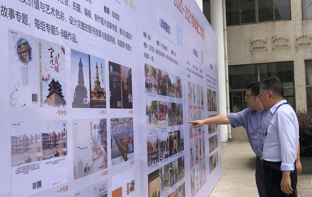 本网讯(新传学院 文/卢钰 图/司皓权 肖雨蒙)为进一步健全本科教学质量保障体系、推进一流本科建设、全面提升人才培养质量,做好2020-2021学年第二学期本科期中教学检查工作,新闻与传播学院根据《关于做好2020-2021学年第二学期本科期中教学检查工作的通知》相关要求,于6月9日在大学生活动中心一楼平台举办了首期课程作业展。展览选取了2020-2021学年第二学期新闻、摄影、动画、播音与主持艺术4个专业5门课程的学生作品进行展示。校党委常委、副校长陆林,招生就业处处长聂全高,教务处副处长崔光磊、李汪根,招生就业处副处长刘振杰,学生工作处副处长宋静等先后莅临指导,新闻与传播学院党政领导班子成员张师帅、杨柏岭、周伍、赵昊、秦枫来到现场参观,摄影专业教师陆青霖等代表指导教师参与本次活动。
