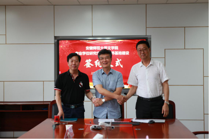 会议最后,项念东、王全忠、张明山代表三方共同签订了安徽师范大学文学院专业学位研究生联合培养基地建设协议。