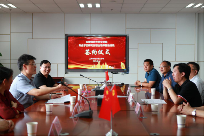 安徽师范大学文学院专业学位研究生上海市两所联合培养基地的建成,是学院首次拓展省外实习基地的成功尝试。签约三方均对该基地的建设予以厚望,希望能够提高实习生教师技能,促进教师发展,拓展学校教师资源,双方达到互惠互利,共同发展。