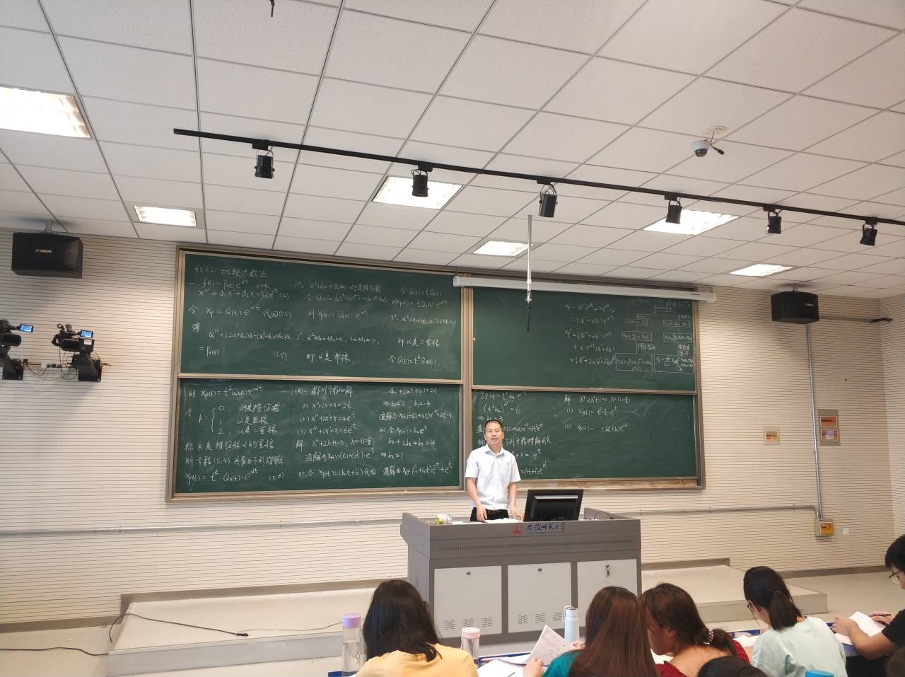 本网讯(教务处 本科教学督导团)6月8日上午第三节课,2021年校本科教学示范观摩课上半年第十二讲由数学与统计学院张道祥教授在花津校区行知楼2070501教室进行。张道祥老师以其扎实的专业知识和严谨的教学态度为师生讲授了《常微分方程》课程中的“非齐次线性微分方程与比较系数法”这一内容。校督导团、学院督导组、教务处和学院领导、系部主任及部分中青年教师观摩了本次示范课。