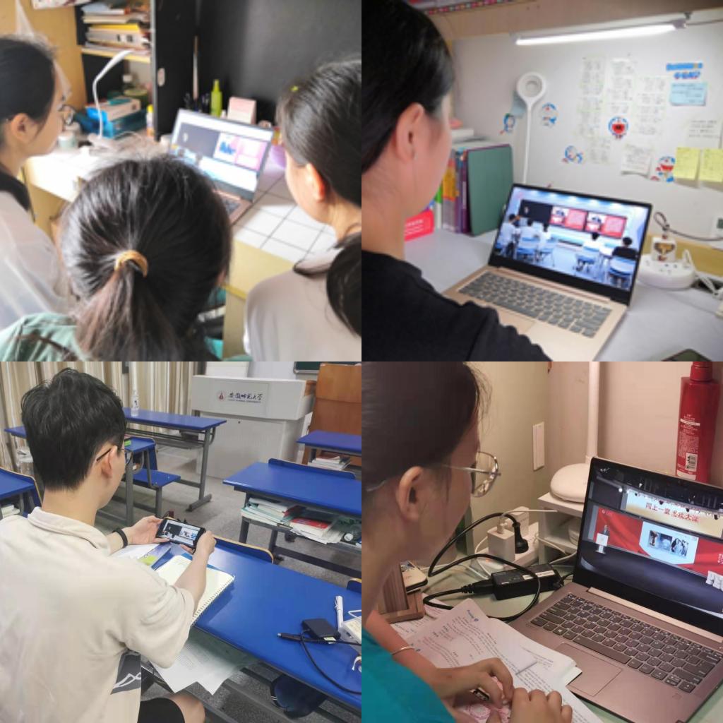 本网讯(文/图 王璐 张玉楠)6月18日下午,外国语学院班子成员、行政教辅人员、学生代表通过安徽省智慧思政课教学平台在线收看了“同上一堂党史大课”,其余教职工和学生通过看直播或重播的方式进行个人自学。