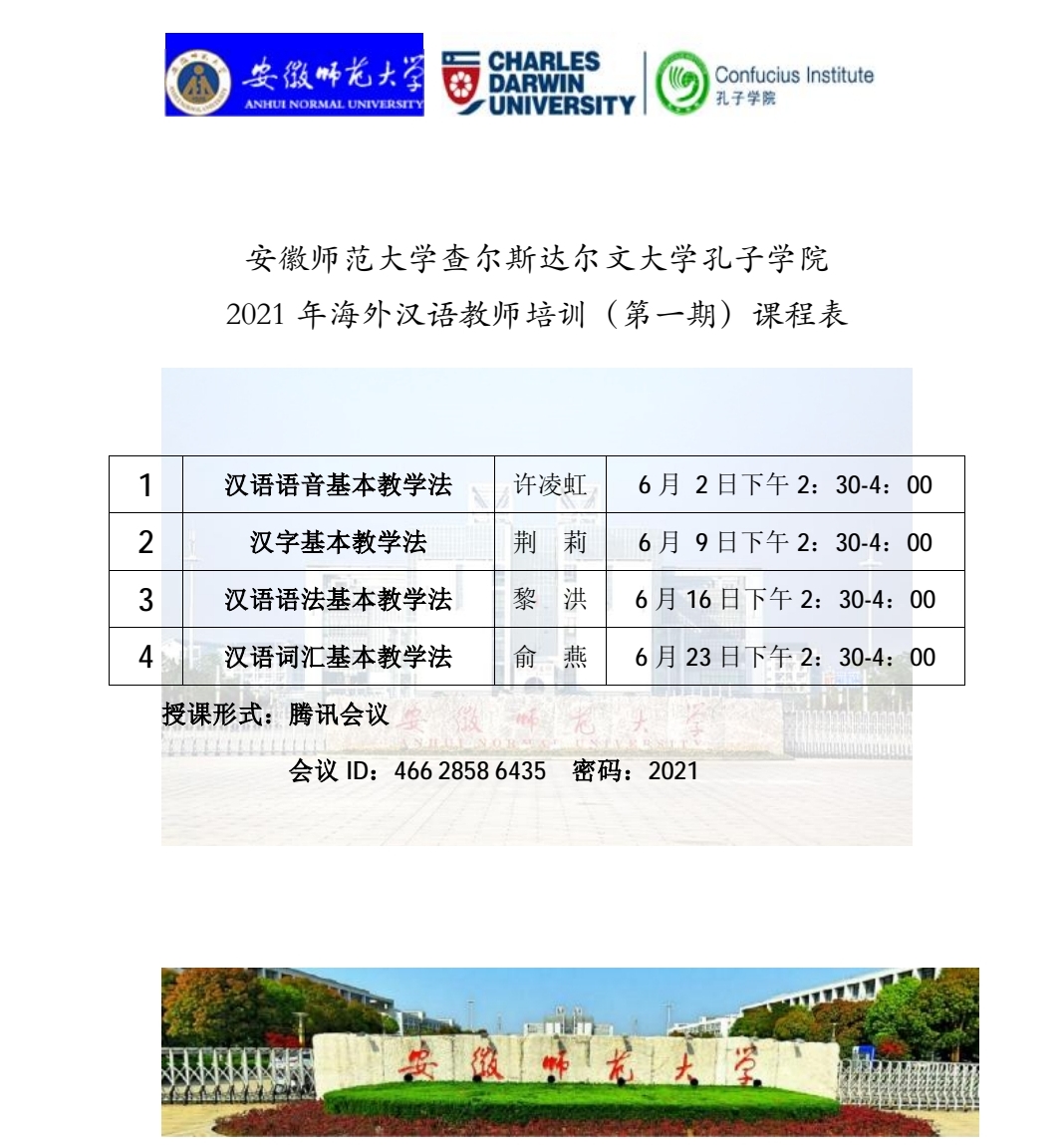本网讯 (国际教育学院)为帮助海外孔子学院教师在岗提高教学水平和专业素养,国际教育学院与澳大利亚查尔斯·达尔文大学孔子学院联合开设首期海外本土汉语教师(线上)培训班。此次培训分为四场教学专题讲座,自6月2日至6月23日,每周举办一场,共有来自澳大利亚查尔斯·达尔文大学孔子学院、乌克兰扎波罗热孔子课堂及我校部分汉语国际教育专业硕士研究生等20余名海外汉语教师、志愿者参与培训。