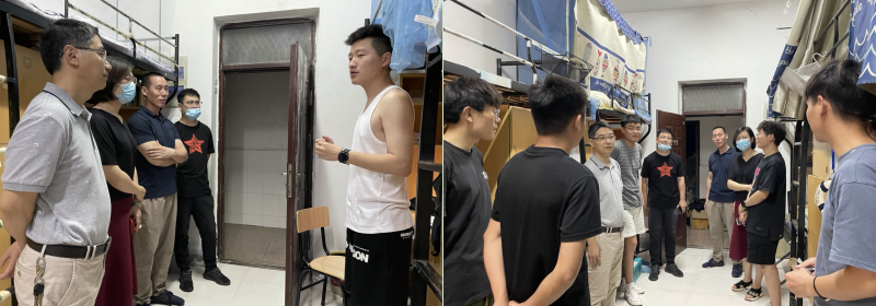 四载相伴终有一别,6月17日晚,学院领导老师分2批分别走访毕业班寝室。在走访过程中,领导老师对毕业生的升学就业状况、行程安排、未来打算等进行了细致地了解和交流。对已经成功升学和签约的同学表示祝贺,给尚未就业和准备继续考研的同学积极鼓励和合理建议。与毕业班寝室成员合影留念,希望他们离校走上社会后,继续关注母校、母院的发展,用知识创造美好的未来,常回家看看。并叮嘱毕业生离校时,要注意疫情安全防护,妥善保管好自己的财务。