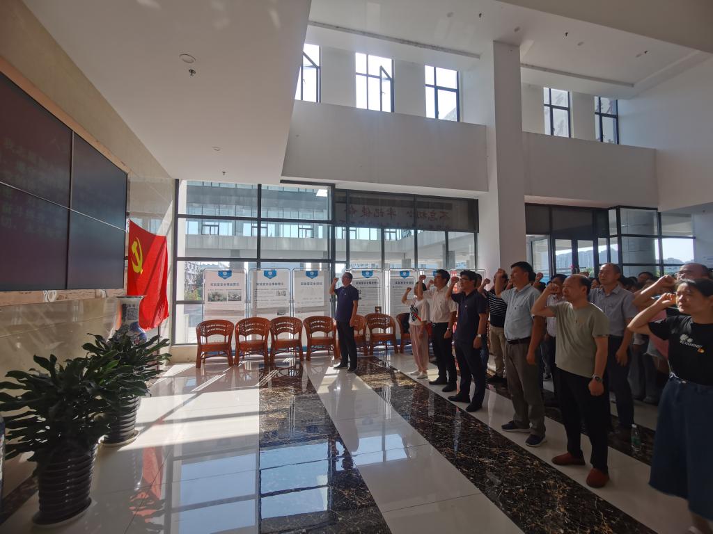 本网讯(化材学院  程紫丹)6月23日下午,化材学院党委在学院二楼大厅举行2021年第二批新党员入党宣誓仪式暨重温入党誓词主题党日活动。学院党委书记汪俊武,党委副书记、院长高峰,党委副书记李古州,党委委员、副院长周双六、王波涛,党委委员崔鹏及各党支部书记、支委、师生党员代表、2021年第二批新发展入党的84名预备党员共同参加仪式,仪式由李古州主持。