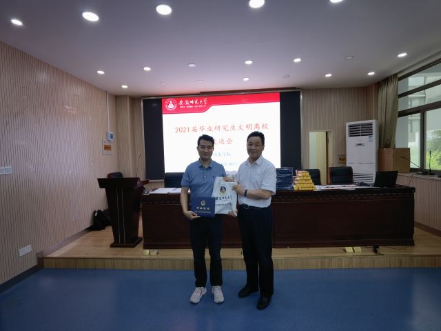 二是营造温情的毕业氛围,让毕业生感受到学院的温暖。学院精心为毕业研究生订制了礼品,并为他们举行了简单而隆重的欢送仪式。6月18日下午,历史学院在二楼举行毕业研究生文明离校欢送会。院长刘道胜、副院长梁仁志、毕业班辅导员及在校研究生等均参加。送会伊始,刘道胜寄语广大毕业生,希望大家走上社会要不忘母校教诲,在自己的工作岗位上踏实工作,认真做人,终身学习,成为一个有幸福感、有成就感的真正杰出的人才。也期盼大家今后有时间多回母院母校看看,多关心母院母校发展。梁仁志跟毕业研究生再次叮嘱了文明离校的相关工作,请大家在疫情防控的大背景下认真履行离校手续,做好有序离校、文明离校、安全离校。欢送会结束后,各班认真组织双证发放工作。刘道胜、梁仁志为博士、硕士研究生代表颁发双证。其后,由各班班委为班级同学发放双证及纪念品,活动整体有条不紊并充满温情。