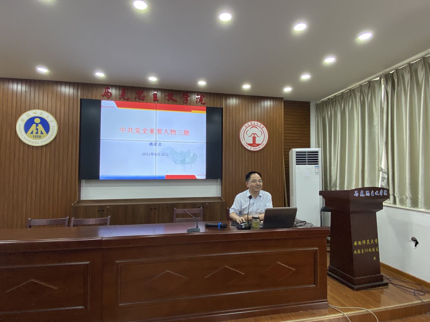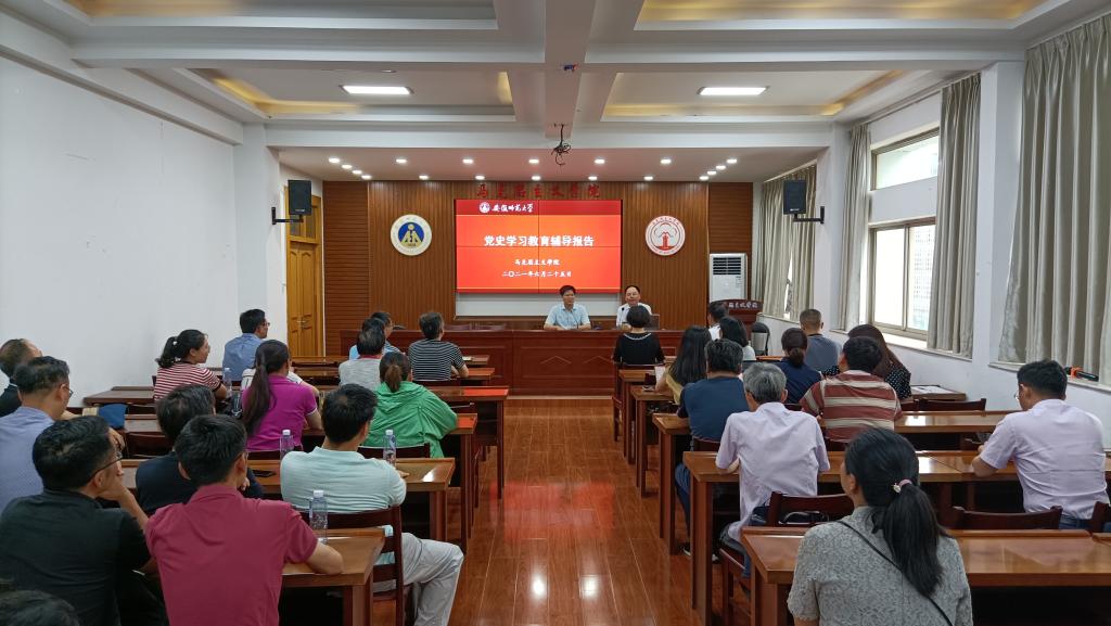 本网讯(马克思主义学院 晏艳6月25日下午,马克思主义学院党委副书记、院长姚宏志教授在学院五楼报告厅作党史学习教育专题辅导报告“中共党史重要人物三题”。报告会由院党委书记严宏主持。学院全体教职工参会学习。