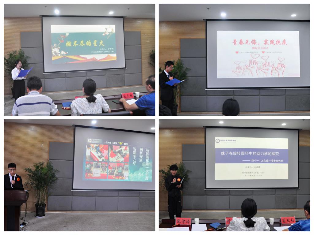 本网讯(物电学院 刘冠琪 吴佳仪)9月26日,物电学院在学院304报告厅举办2021年暑期社会实践暨假期“四个一”展评交流会。学院党委副书记黄友生、工科实训中心主任蔺玉柱、院团委副书记甘露及全体专兼职辅导员担任评委。各团支部、实践团队代表及2021级新生代表参加了汇报会。会议由院团委程帅同学主持。