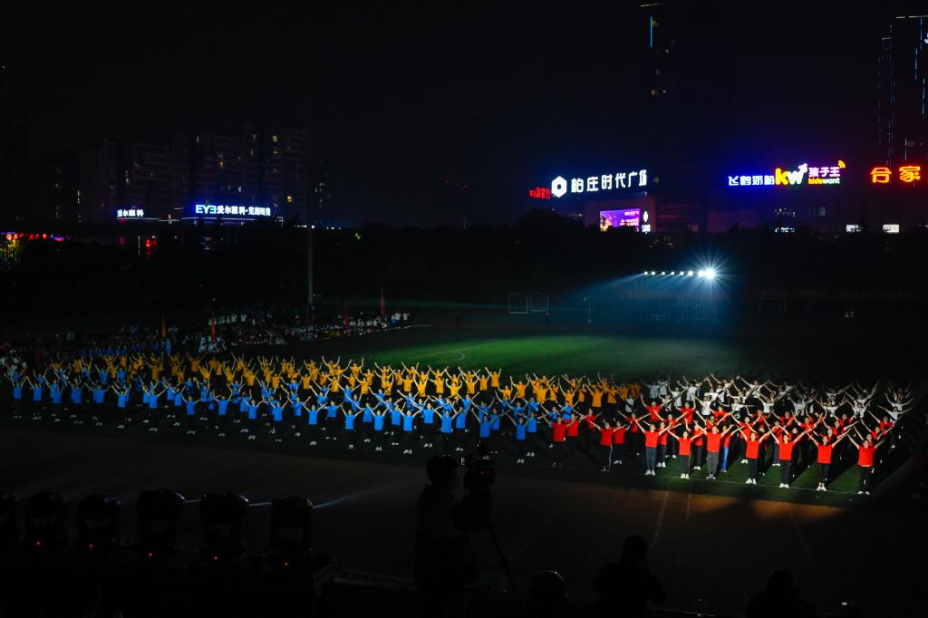 本网讯(王俊恒/文 杨穆龙/图)今年是中国共产党成立100周年,又恰逢学校运动会举办50周年。为号召广大师生积极响应“全民健身”,共同营造师生同台、全员参与的体育文化氛围,激发教职工爱国爱校情怀,献礼建党100周年,10月21日晚,460名教职工在校第50届田径运动会开幕式上闪亮登场,激情展示了“社会主义好”排舞表演,成为本次校运会开幕式亮点之一。