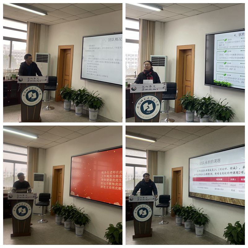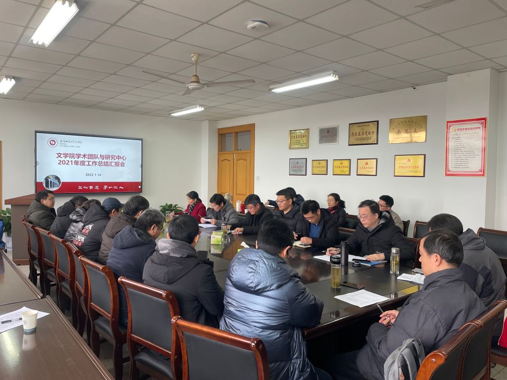 1月14日下午,文学院在学院四楼会议室举行2021年度学术团队与研究中心工作总结考评会。学院领导班子、教授委员会委员、各团队负责人及4个研究中心负责人参加了会议,会议由副院长李伟主持。