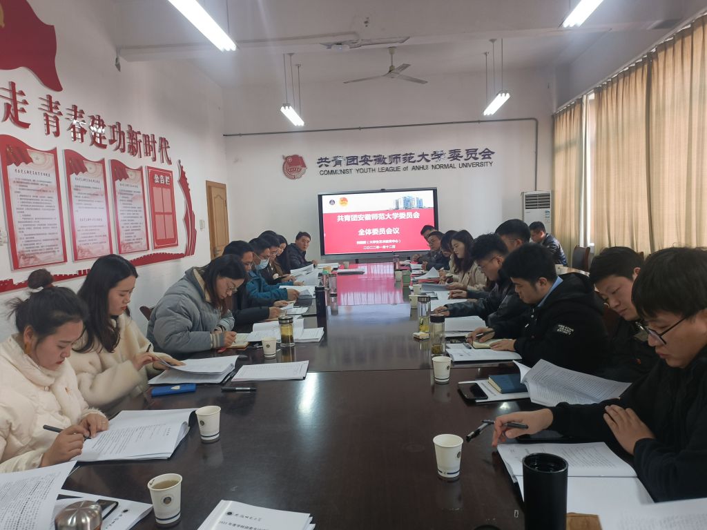 1月12日上午,学校召开共青团安徽师范大学委员会全体委员会议,总结回顾2021年度工作,谋划研究2022年度工作。校团委全体委员、各学院团委书记、校团委专兼职团干参加会议。会议由校团委书记汪凯主持。