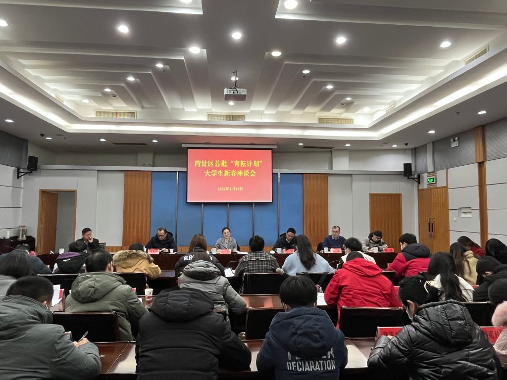 1月14日,学校首批“青耘计划”大学生新春座谈会在湾沚区举行,湾沚区委常委、副区长梁燕,学校有关部门及学院负责人、湾沚区有关单位负责同志以及学校选派到湾沚区兼任村(社区)团支部副书记的“青耘计划”志愿者参加座谈会。座谈会由团湾沚区委书记崔强主持。