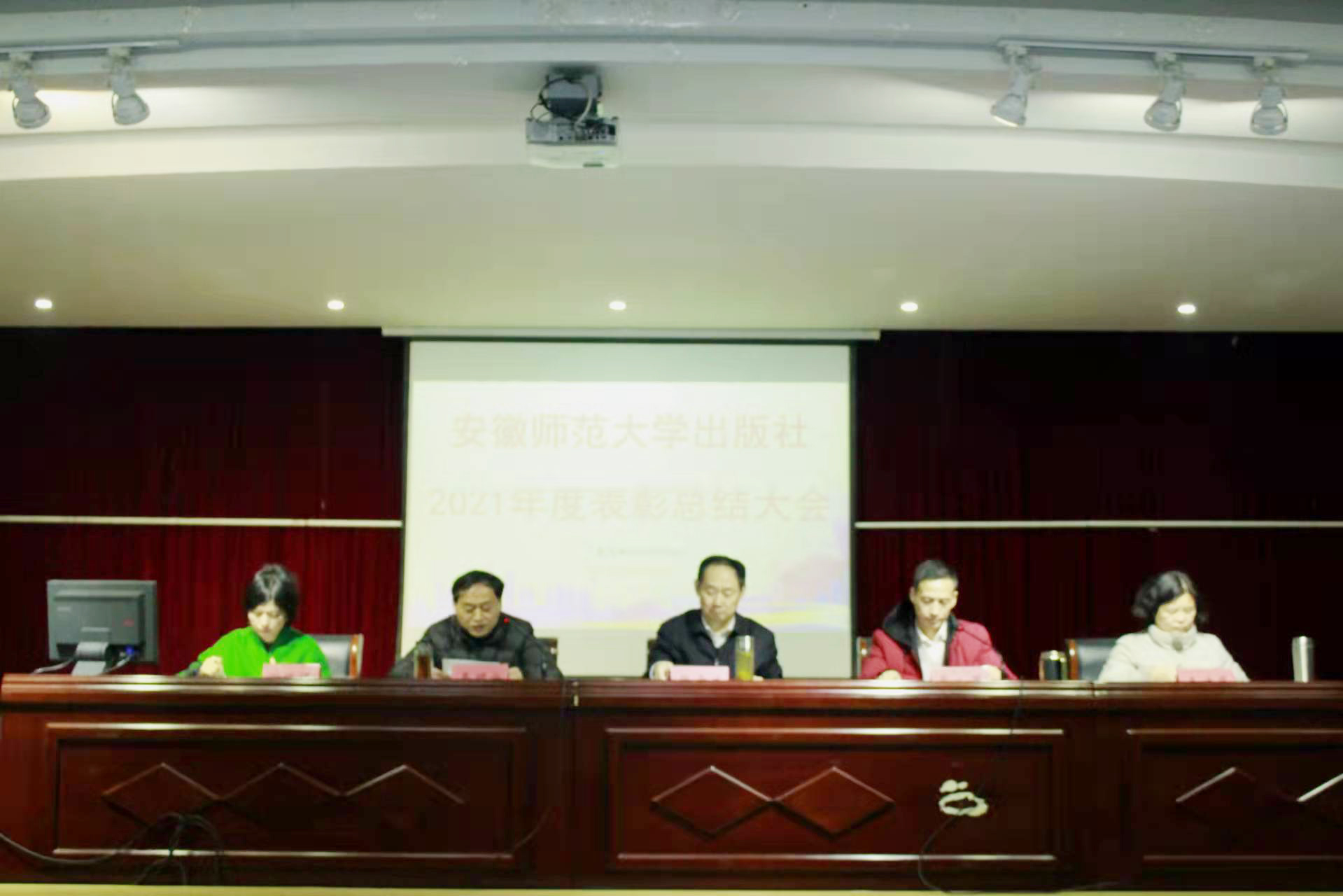 1月26日下午,安徽师范大学出版社在赭山校区图书馆报告厅召开2021年度表彰总结大会。出版社及图书发行公司全体职工参加大会,会议由总编辑戴兆国主持。