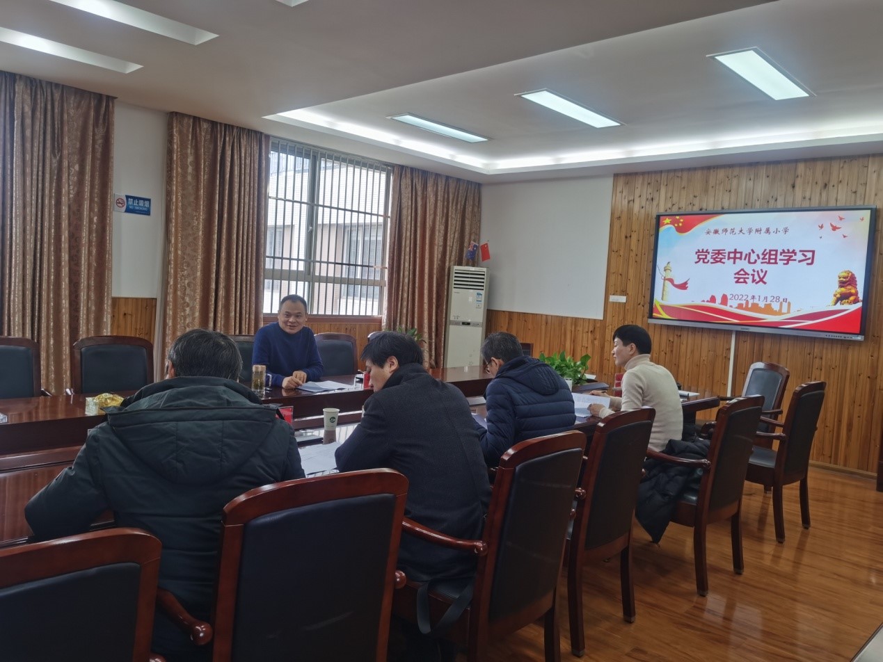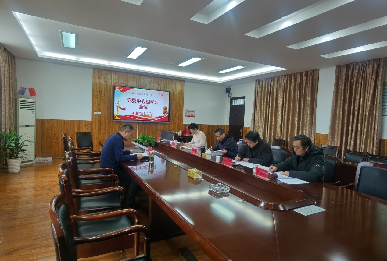 1月28日上午,在农历虎年春节即将到来之际,安徽师范大学附属小学在中校区召开本年度第二次党委中心组学习会议,深入学习贯彻中央有关文件精神,切实提高附小党委班子领导能力和水平,促进学校发展建设。学习会由附小新任党委书记、校长辛治洋主持。附小党委中心组成员参加会议。
