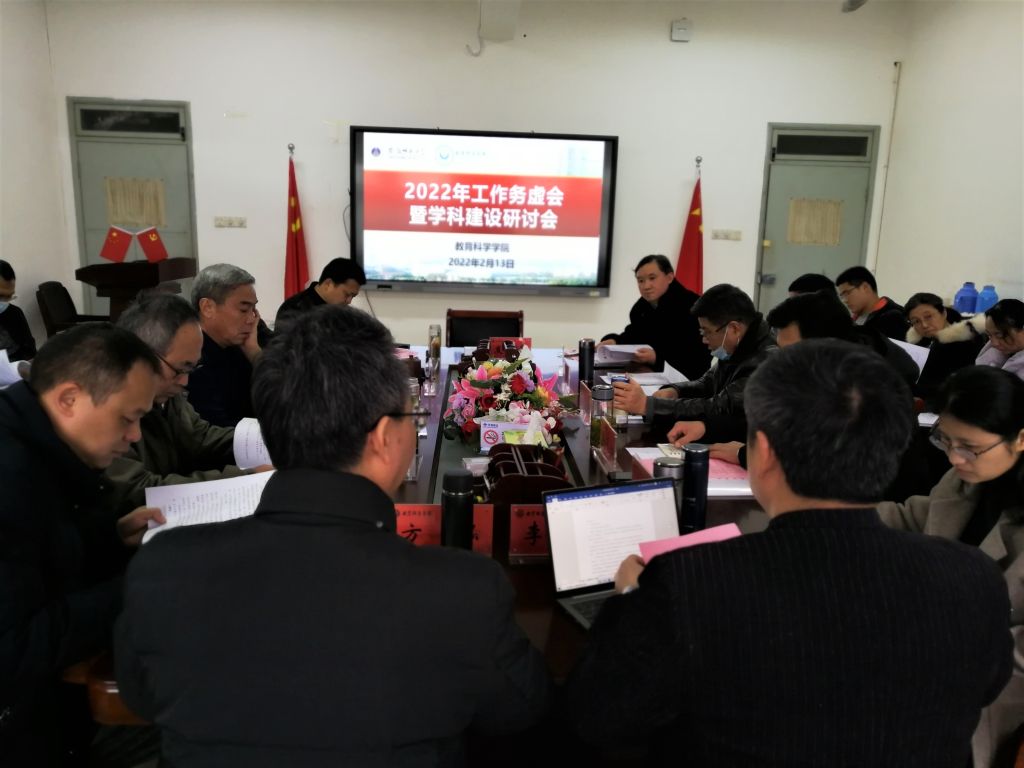 务虚话实定思路,凝心聚力谋新篇。2月13日下午,教育科学学院在308会议室召开2022年工作务虚会暨学科建设研讨会,校党委常委、副校长、教育学学科带头人朱家存教授应邀参会。院领导班子成员、教育学和心理学一级学科带头人及学科骨干、近五年新进博士等近50人参会,会议由院党委书记方泓主持。