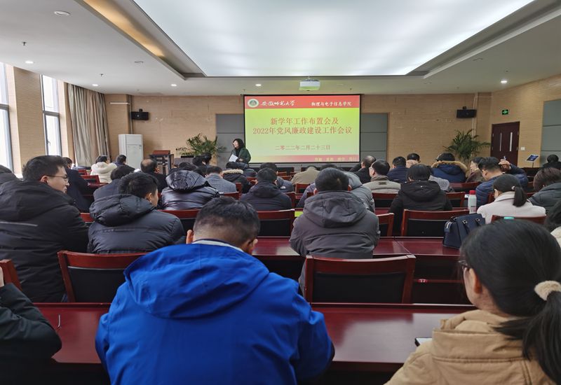 院长郑贤锋首先回顾了假期工作,部署了2022年重点工作。他指出,学院今年将进一步加强党的建设,积极开展迎接、学习、宣传党的二十大行动;进一步提高人才培养质量,积极推进人才培养方案修订、质量工程项目建设、学科竞赛、考研就业,启动工程认证和学位点专项评估准备工作;进一步强化师资队伍建设,坚持引育并举,继续抓好高层次人才引进和省级以上人才项目的培育,加强师德师风建设;进一步加强科学研究工作,组织申报教育部重点实验室,抓好安徽省科技奖和国家自然科学基金的申报工作;进一步优化学院内部治理结构,完善相关制度。各分管领导分别就近期“三教落实”、科研工作、学生考研就业等工作以及实验室安全专项行动进了具体安排与布置。