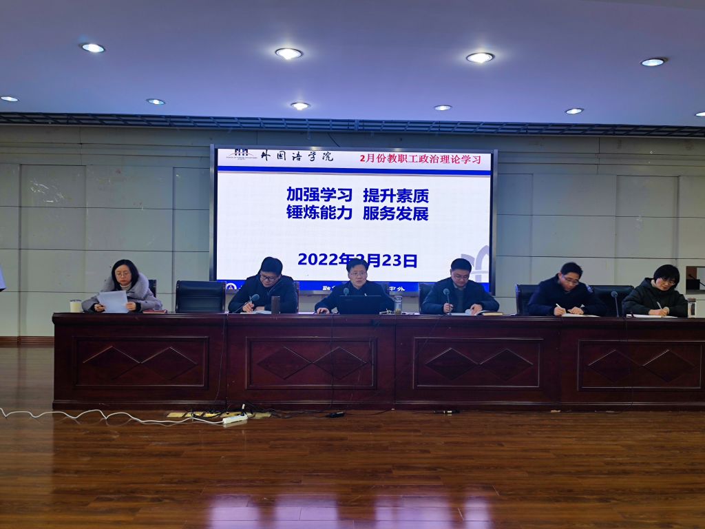 外国语学院党委书记谢超峰领学了习近平总书记在省部级主要领导干部学习贯彻党的十九届六中全会精神专题研讨班开班式上的重要讲话精神和《努力成为可堪大用能担重任的栋梁之才》等重要理论文章,传达学习省委有关重要会议精神。他指出,今年是政治大年,全院上下要把政治理论学习放在更加重要位置,以新时代党的创新理论为指引,深入贯彻落实习近平总书记给北外老教授重要回信精神,扎实做好巡察整改“后半篇文章”,直面外语院校发展新形势新任务新挑战,增强“慢进是退不进更是退”的紧迫感,振奋精神状态,鼓足发展干劲,抢抓发展机遇,奋力开创学院发展新局面,以实际行动喜迎党的二十大召开。