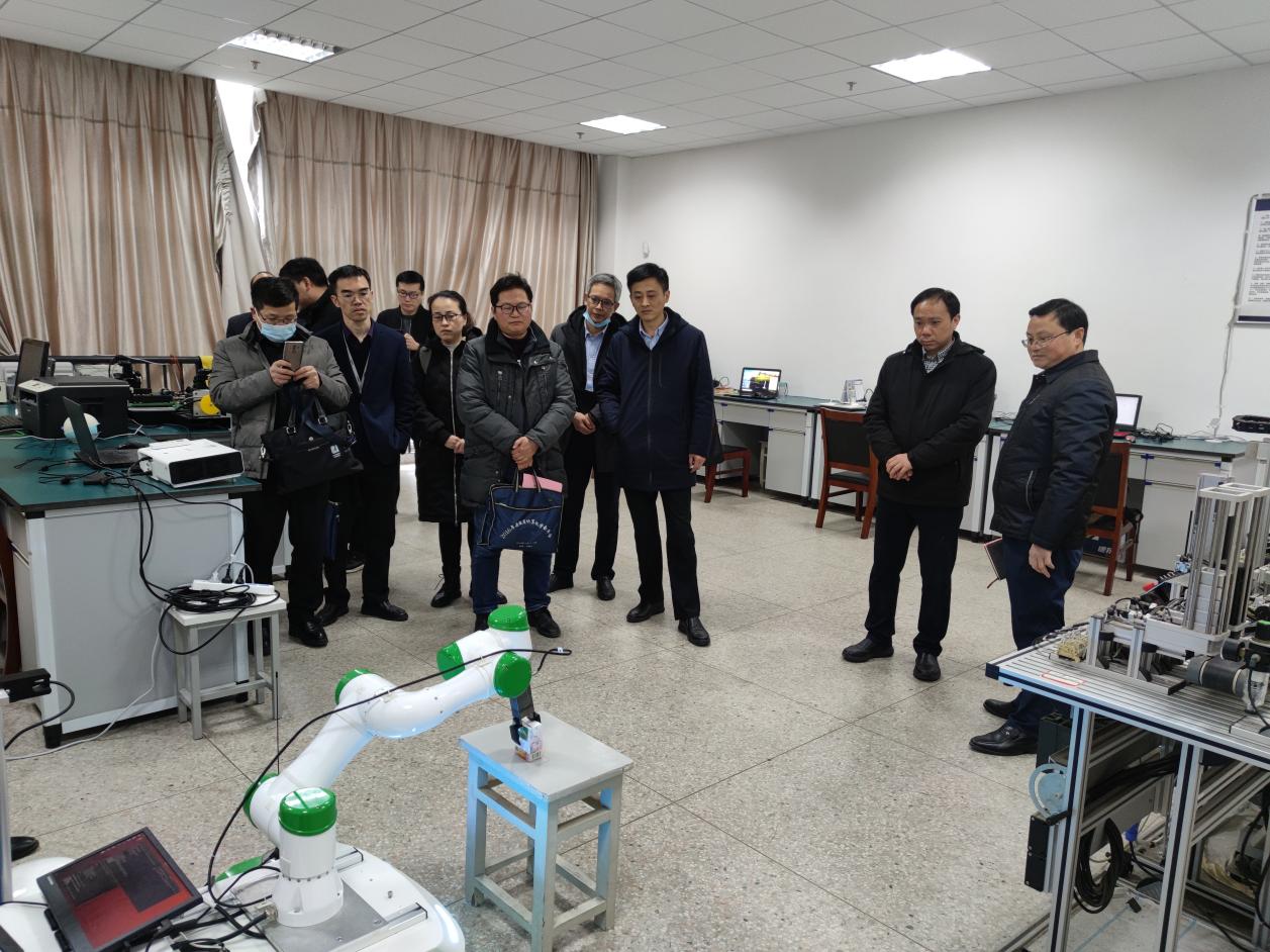 会后,詹家干一行参观了物电学院智能机器人信息融合与控制工程实验室、光电材料科学与技术重点实验室等实验场所,并就相关技术问题与实验室负责人进行了探讨交流。