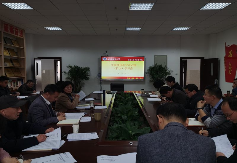 3月2日,物电学院召开党委理论学习中心组(扩大)学习会,深入学习贯彻习近平总书记在省部级主要领导干部专题研讨班、十九届中央纪委六次全会等会议上的重要讲话精神。院党委书记李娟主持会议。学院党委委员、班子成员、党支部委员参加学习会。