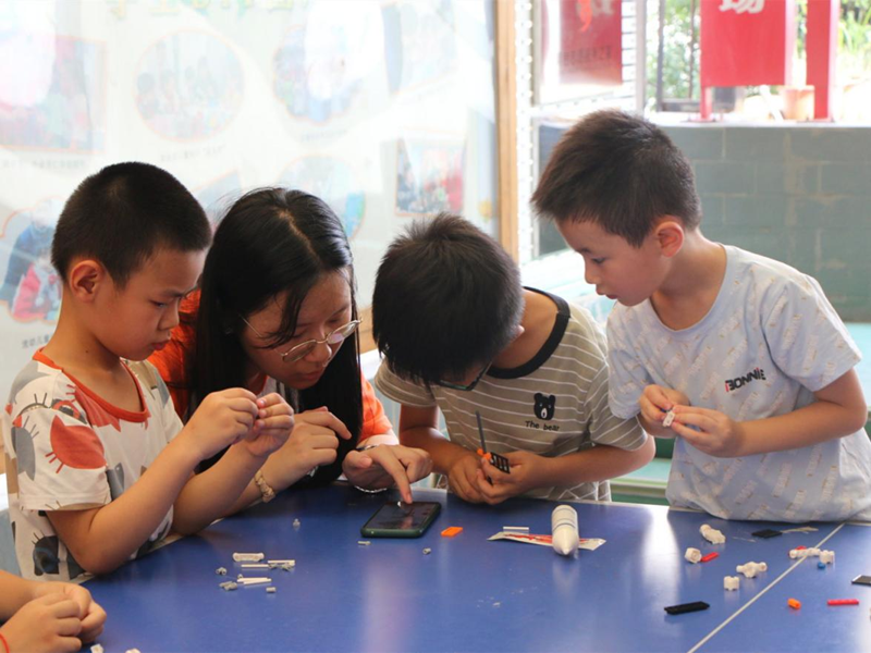 团队还结合社区儿童年龄状况和兴趣特点,采取手工与绘画等形式,开展了多场手工创作活动,让小朋友们呈现自己的梦想。实践期间,团队志愿者带领小朋友们通过手工折纸引导社区儿童用丰富的形式展现理想;在粘土制作游戏和缝制手工挎包中感受动手创作的快乐;在拼装神舟飞船模型中带领社区儿童感受航天事业的艰巨性。“一个小小的模型搭建都花费了我们这么长时间,真正的国家航空事业那得面临多么困难呀,航天事业工作者们真的很伟大!”小朋友们发自内心的感慨也证明了团队实践活动的意义。