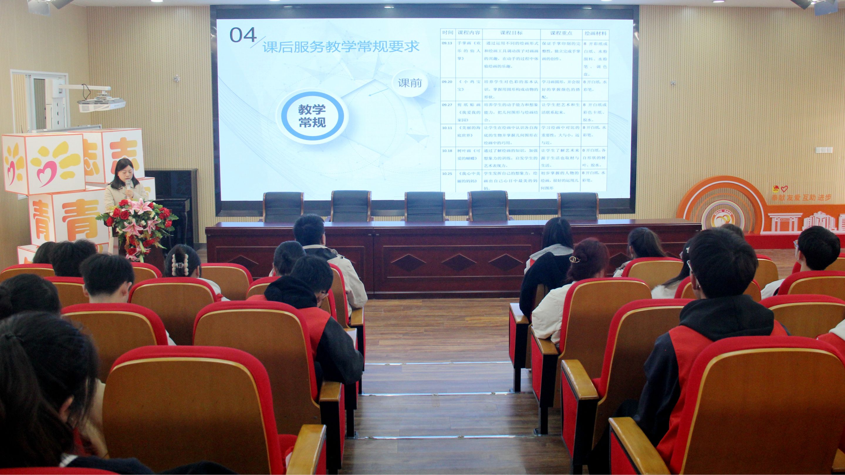 会上,贾冕茜宣读了我校全体课后服务志愿者名单。教务处、团委负责人为“向阳花”志愿服务团队、“五四爱心学校·青悦课堂”大学生志愿者课后服务队授旗。我校“爱暖师大”十佳青年志愿者代表、音乐学院本科生曹鑫悦,往届课后服务志愿者代表、马克思主义学院本科生刘薇分别分享了自己的志愿服务经历,勉励所有“双减”课后服务志愿者都能在讲台上提升专业能力、践行服务社会初心,收获一份难忘的美好回忆。全体志愿者起立进行集体宣誓。会后,澛港小学副校长吕九华应邀为全体志愿者作题为《站好课后服务岗 助力孩子“悦”成长》的专题培训。