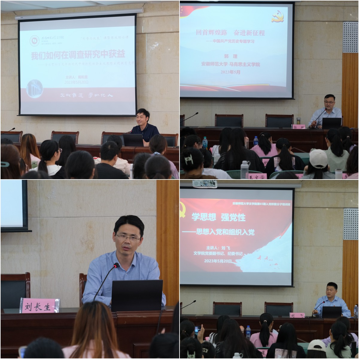 开班典礼结束后,戴和圣为学员们讲授《学深悟透新思想,调查研究促发展》,提出调查研究是马克思主义世界观和方法论的集中体现,也是党的思想路线和群众路线的内在要求,充分彰显了中国共产党人的鲜明政治品格和强大政治优势。纪委办案管审理室主任刘长生为学员讲授了《认真学习党章,让信仰点亮人生》,带领学员从理解把握党章的修改和发展历程、党章主要修改内容、党章知识和汲取信仰力量四个方面对党章学习进行解读。文学院党委副书记、纪委书记刘飞为学员讲授《学思想、强党性——思想入党和组织入党》,引领学生深刻认识中国共产党百年奋斗所取得的历史性成就,指明如何端正和践行正确的入党动机。马克思主义学院副教授郭理为学员讲授了《回首辉煌路、奋进新征程——中国共产党历史专题学习》,带领学生们共同走进中国共产党艰难而又光辉的历史,深刻体会党的初心使命,感悟党的思想伟力,让学员们不仅学到了党的知识,而且大大地提高了同学们入党的积极性,使大家更加严格要求自己,努力向党组织看齐。