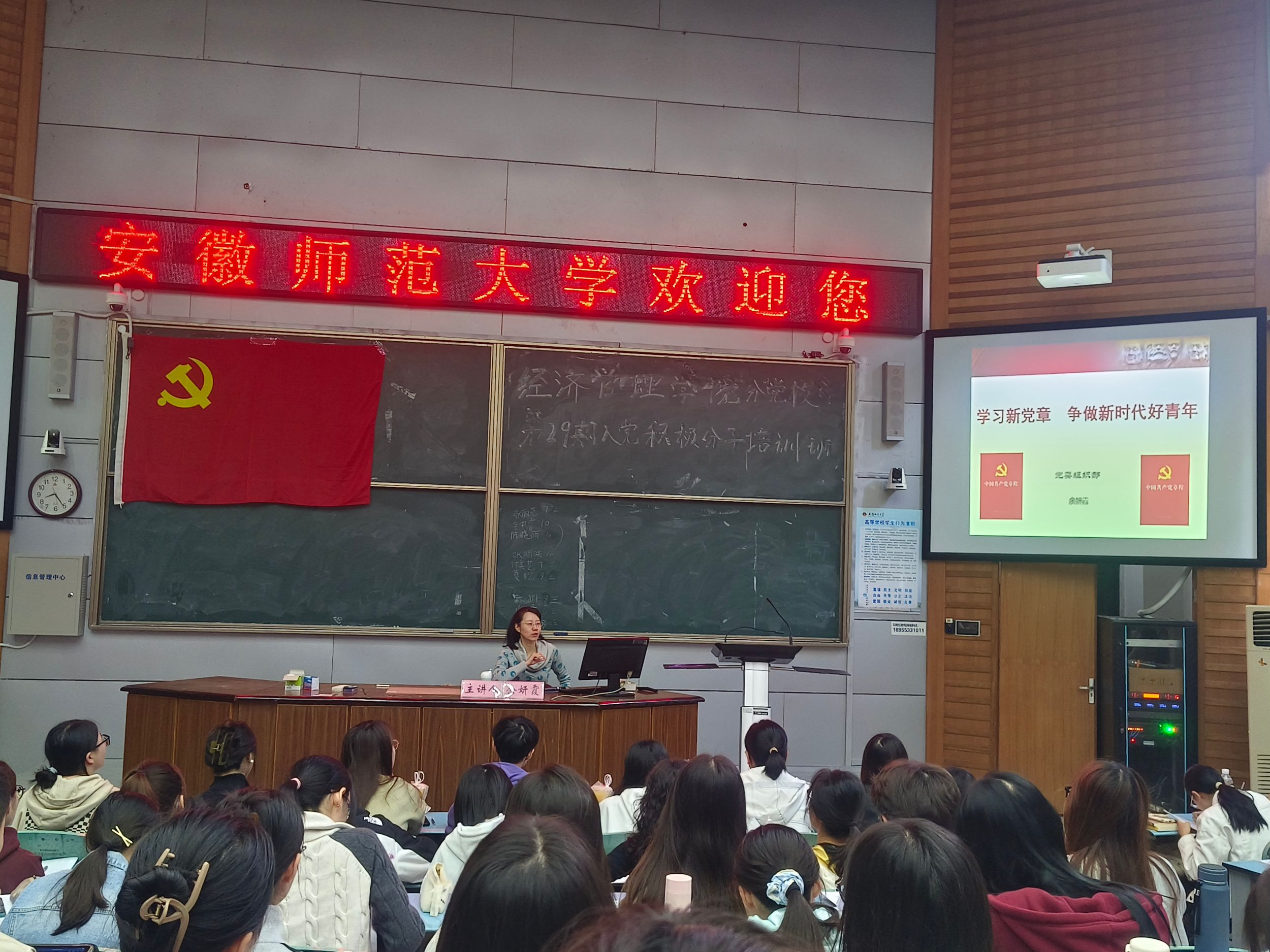 10月18日-10月21日,培训班邀请党校常务副校长、党委组织部副部长余妍霞,院关工委副主任刘勇,院党委书记乔静,马克思主义学院副教授张鑫等开展《解读中国共产党章程》《党的自我革命永远在路上》《思想入党与组织入党》《改天换地——三大战争与新中国成立》习近平经济思想《发展党员的程序和手续》等专题辅导报告。