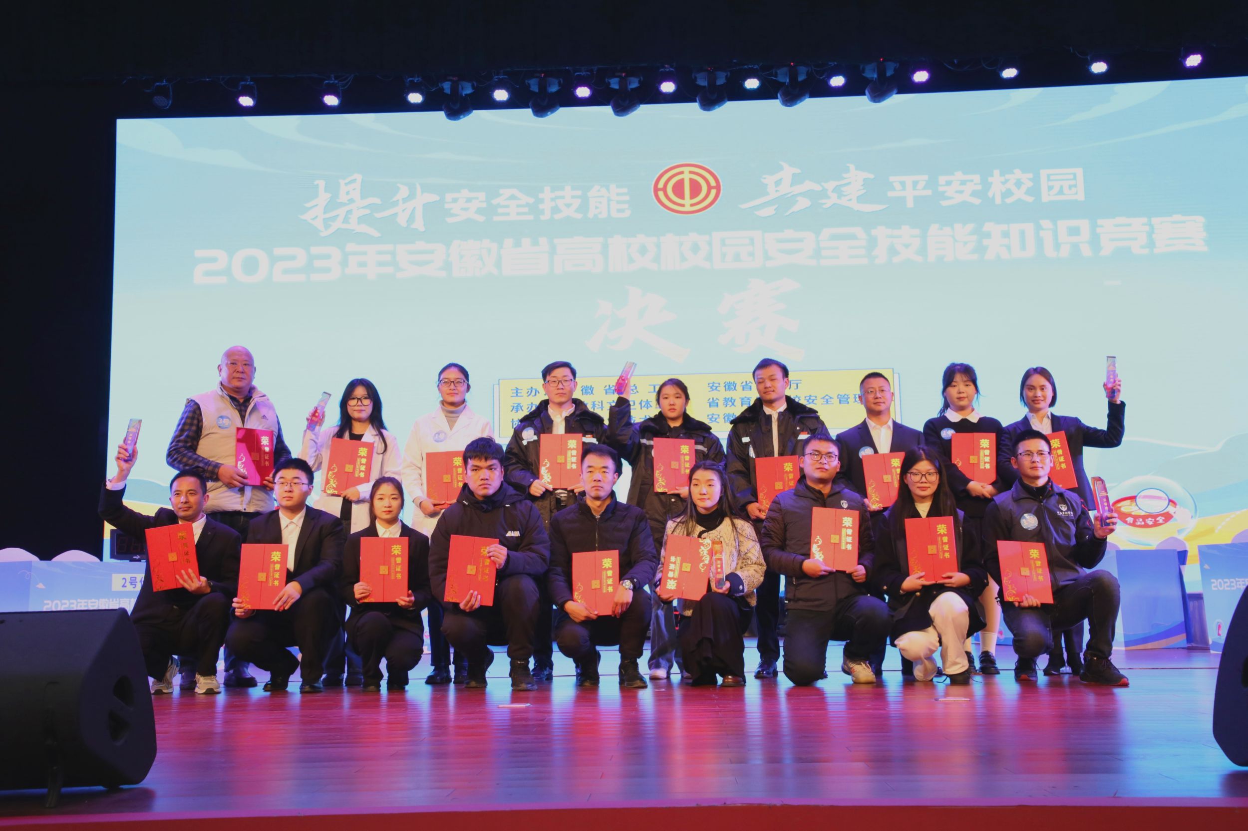 为深入贯彻习近平总书记关于安全生产重要论述,认真落实党的二十大精神,全面践行总体国家安全观,进一步学习宣传《安徽省学校安全条例》等学校安全法律法规、政策文件,普及安全知识,提升安全意识,增强安全技能,由省总工会、省教育厅主办,省教科文卫体工会、省教育厅学校安全管理处承办,安徽青年报社协办的2023年安徽省高校校园安全技能知识竞赛决赛于12月25日在安徽职业技术学院举办。我校组建由保卫处干部邢飞、法学院辅导员朱慧、学生王振东组成的代表队,获得第四名的好成绩。