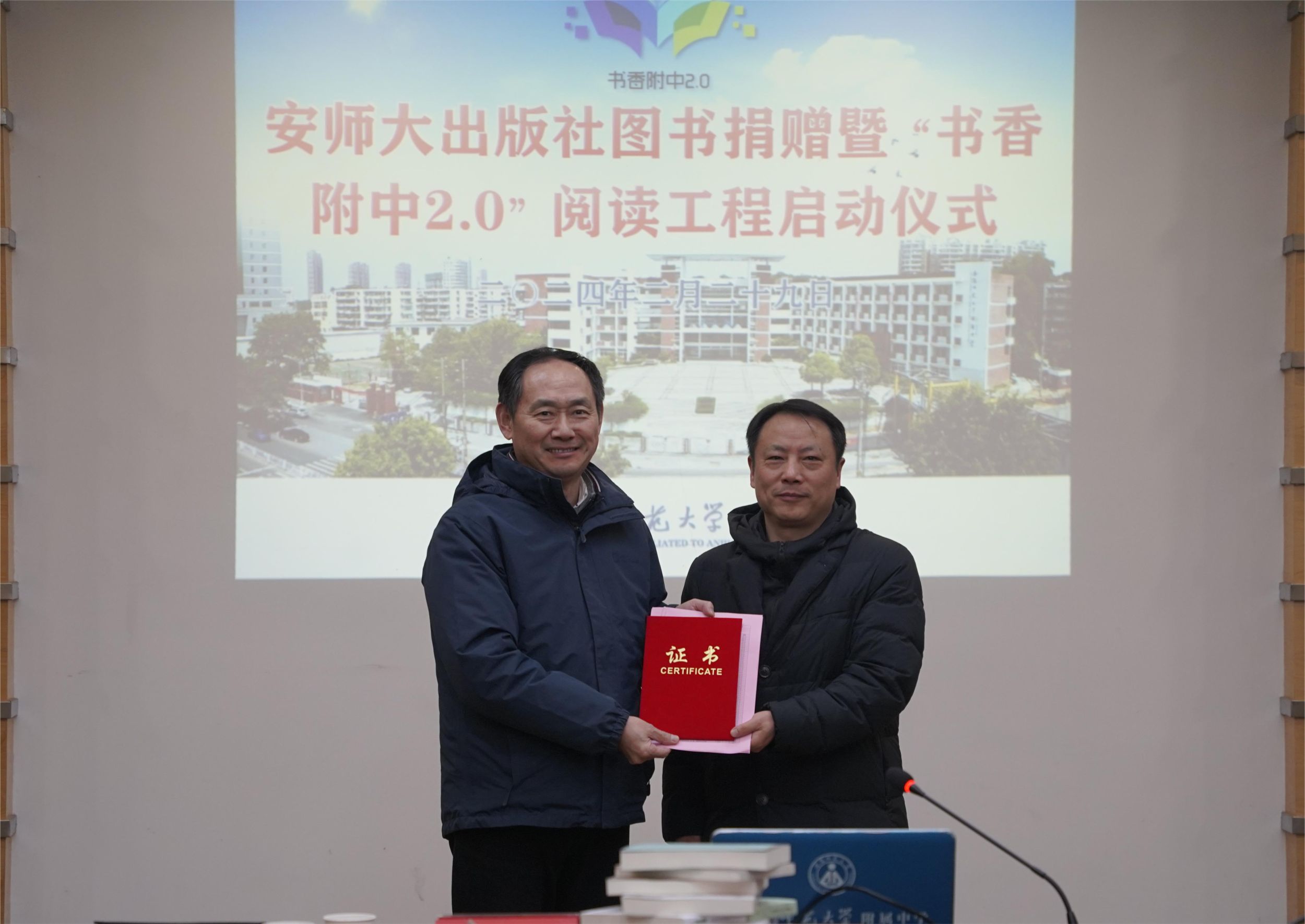 捐书铸梦,共沐书香。2月29日下午,安师大出版社向安师大附中捐赠图书仪式在附中育英楼第五会议室举行。出版社社长张奇才,总编辑、副社长戴兆国,副社长王洁萍,副总编辑谢晓博和编辑部负责人参加捐赠仪式;附中党委书记夏吉中、校长毛宣海,副校长白凌志,校长助理翟佳,图书阅览中心主任严景东和学校教师代表,安徽省特级教师王屹宇等出席会议。