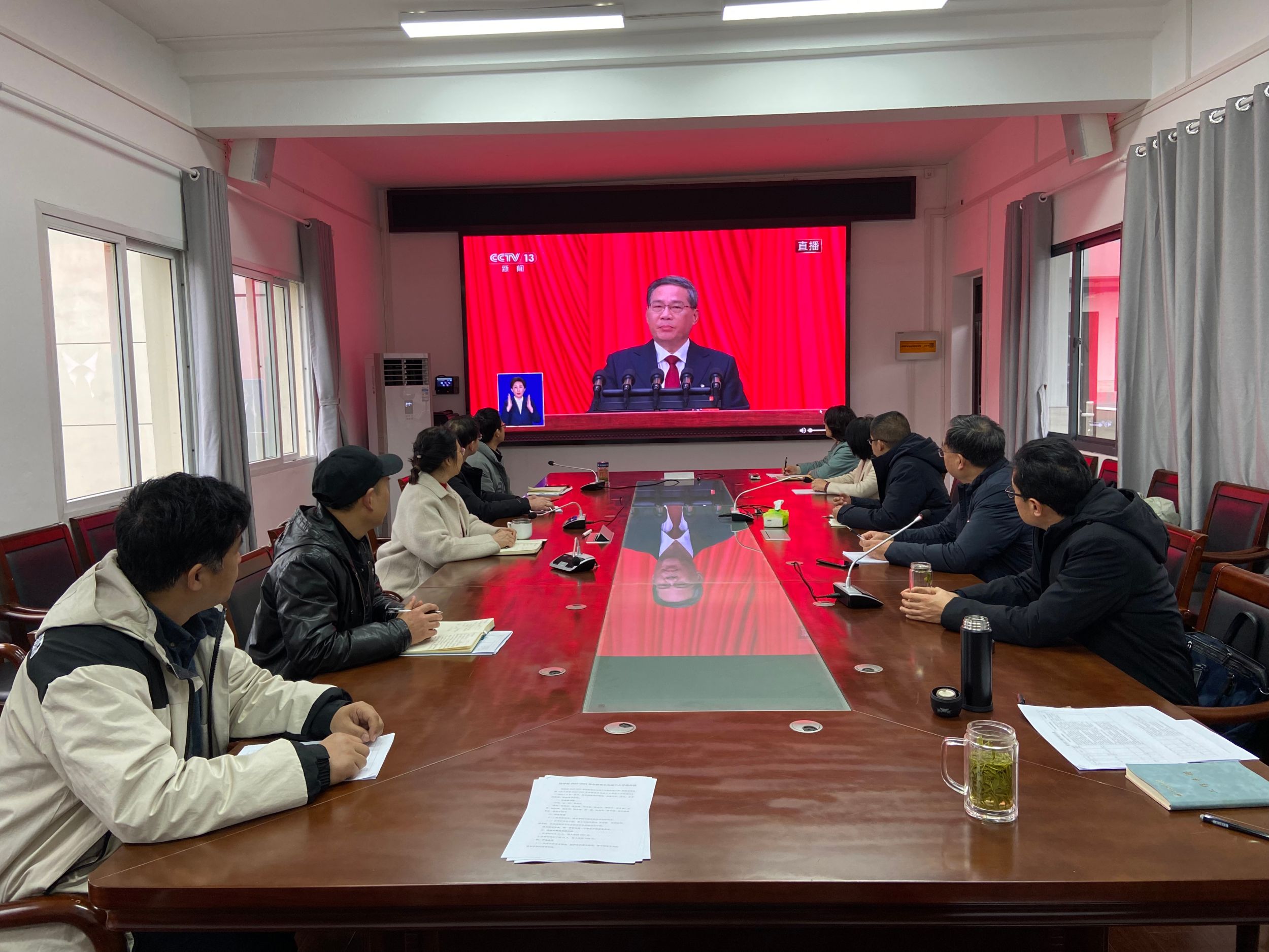院党政领导、教师代表在学院五楼会议室集中收看开幕式直播实况,听取国务院总理李强所作的《政府工作报告》,学习领会大会精神。各教师、学生党支部在支部党员活动室观看大会直播。在辅导员老师的组织下,各年级学生充分利用互联网和新媒体平台,通过观看直播、学习研讨等形式,关注“两会”热点问题,同学们就乡村振兴、环境保护、社会保障、科技创新、教育改革等问题进行了讨论。