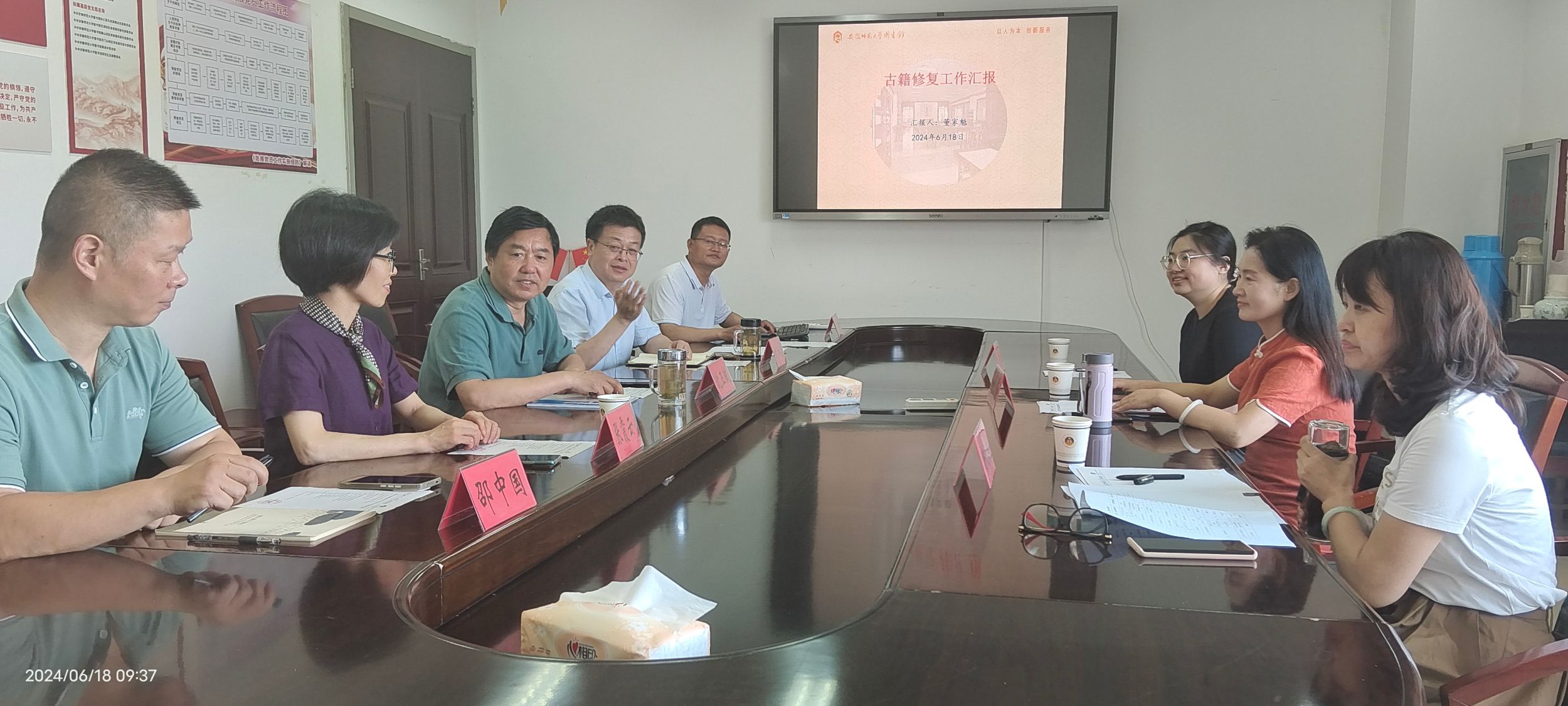 6月18日上午,“安徽省古籍修复技艺传习站”评审专家组一行3人赴我校图书馆开展实地评审,图书馆馆长沈正赋及古籍部相关人员参加会议,会议由副馆长刘和文主持。
