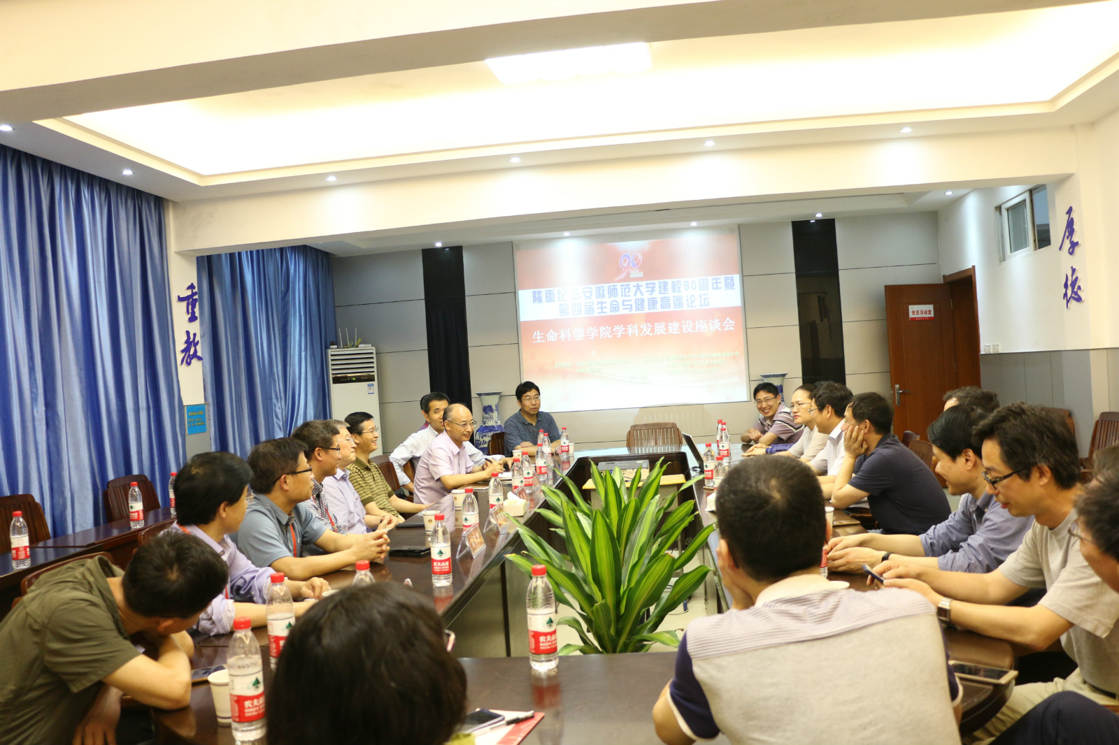 本网讯(生科院 张文君)5月19日下午,中科院国家基因研究中心主任、中科院上海生科院植物生理生态研究所所长韩斌院士、北京师范大学生命科学学院邱小波教授(杰青)、广西大学副校长冯家勋教授、中科院遗传与发育生物学研究所储成才研究员(杰青)、北京四环生物制药有限公司董事长程度胜教授、浙江大学生命科学学院邱英雄教授、浙江理工大学生命科学学院吕正兵教授、美国密歇根大学环境健康科学系奚传武教授、美国德克萨斯大学McGovern医学院童青春教授共来自生命科学各领域的9位杰出科学家校友应邀和学院全体教授、学科学位点负责人、专业负责人一起,就学科发展建设工作进行了座谈交流。会议由院长吴孝兵教授主持。