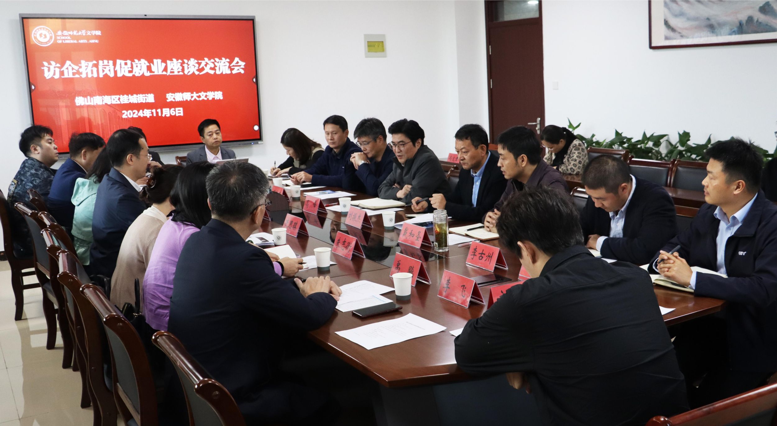 仰国林介绍了佛山市南海区的历史文化、经济发展和人才政策,并从“公园城市、教育强镇、人才乐园”三张名片对桂城街道的城市建设、基础教育办学情况进行详细推介。他对安徽师范大学人才培养质量给予高度评价,对学校为桂城街道持续输送了优秀毕业生表示感谢,希望借此机会与学校进一步加强合作。张丽霞介绍了西樵镇的文化氛围、师资待遇等,期待和学校共建大学生实习就业基地,达成长期的校地合作。几所中小学校长分别介绍了学校基本情况和用人需求,对我校毕业生在就业岗位上的优秀表现给予高度肯定,对师范生具备的扎实理论基础、优秀的教学技能和良好的发展潜力表示充分认可,希望安徽师大能够输出更多的优秀学子,形成“双向奔赴”的良好局面。