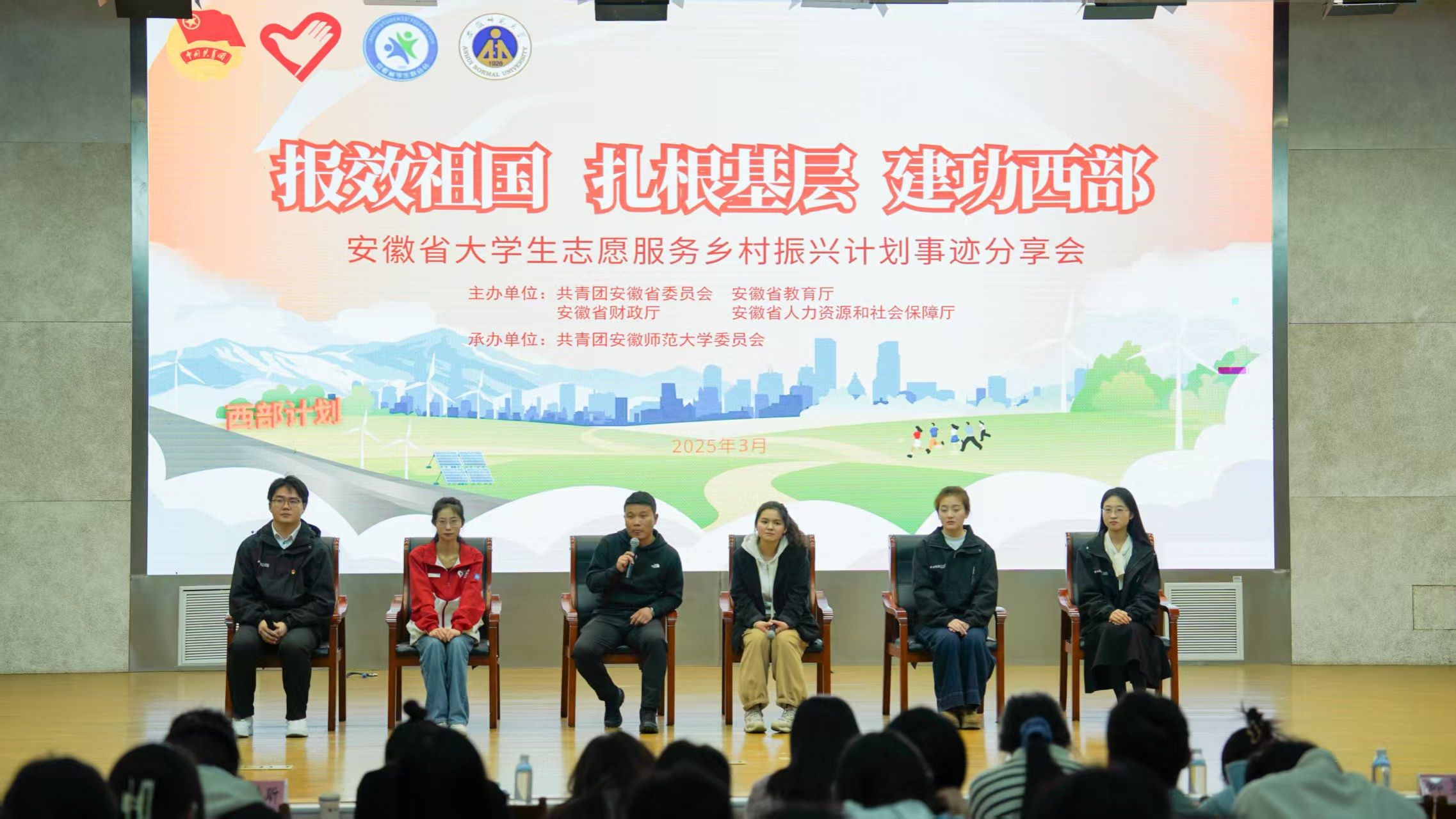 2014年西藏专项西部计划志愿者尤如俊,2022年新疆专项西部计划志愿者吴又佳,2022年新疆专项西部计划志愿者代婷,2024年安徽省大学生志愿服务乡村振兴计划志愿者朱丹妮、纵瑞统、邹昊男结合自身经历,依次作志愿服务事迹分享;西部计划安徽省项目办就2025—2026年度大学生志愿服务西部计划、安徽省大学生志愿服务乡村振兴计划做情况介绍,与现场师生展开交流,并就相关问题作解答。
