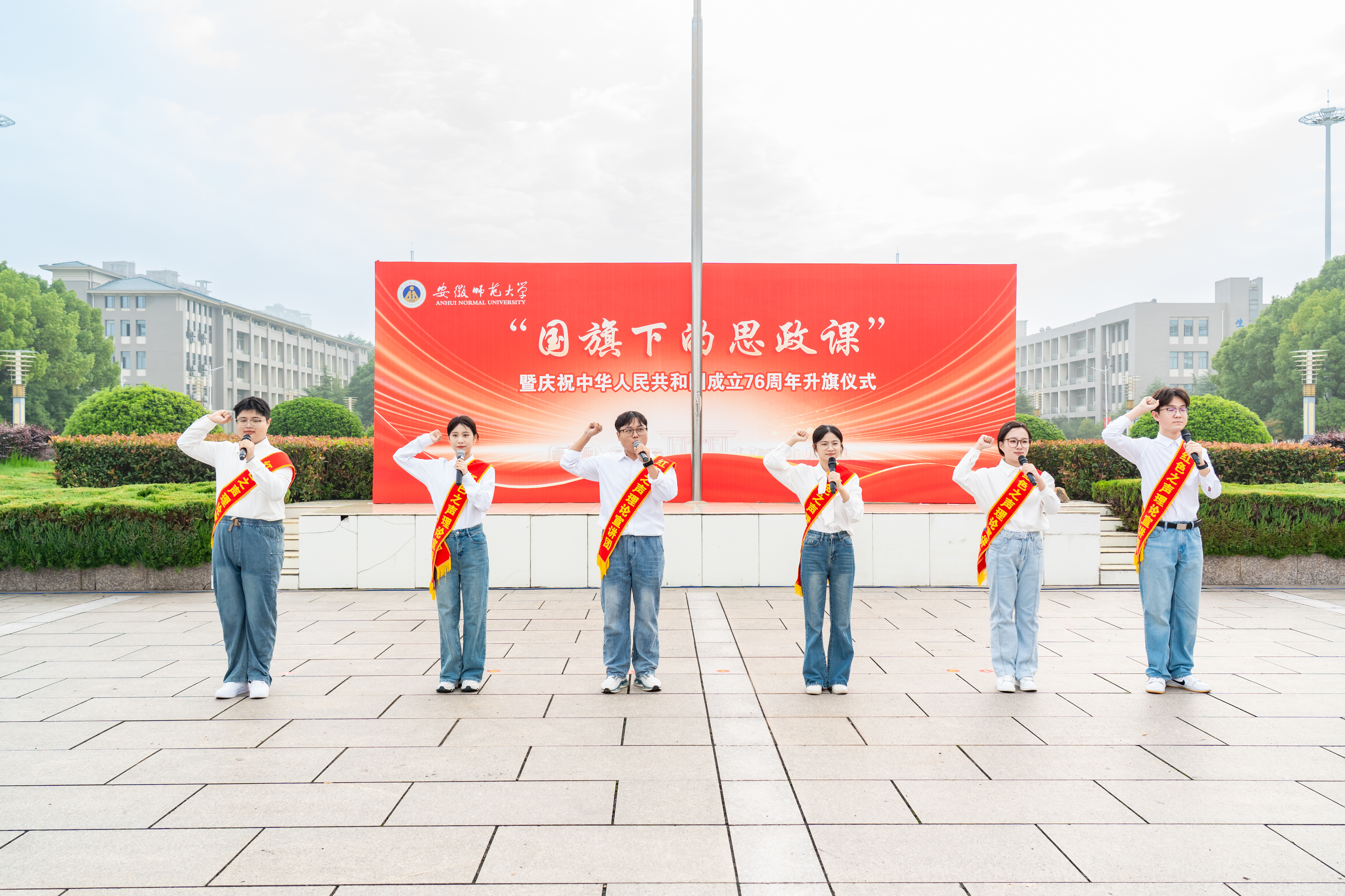 “这盛世,由我们续写!”马克思主义学院红色之声理论宣讲团李艾、何瑞雪、刘羽飞等六名同学集体朗诵《共庆盛世华诞,争做强国栋梁》。他们用真挚的情感,诠释了师大学子挺膺担当、实干报国的精神风貌。